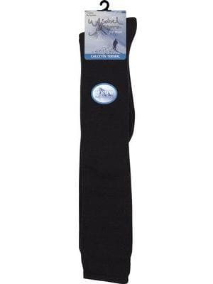 Calcetín térmico largo de caballero. Retiene el calor corporal garantizando una agradable sensación de bienestar, remallado a mano y puño anti presión para mayor sujeción sin opresión.